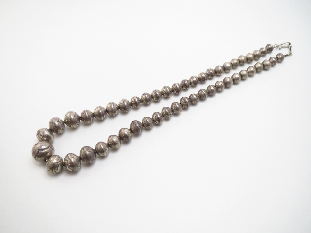 【NAVAJO】ナバホのビンテージジュエリー、『ナバホパール』とも呼ばれる49個ものベンチメイド(ハンドメイド)シルバービーズで構成されたアンティーク/ビンテージネックレスです。