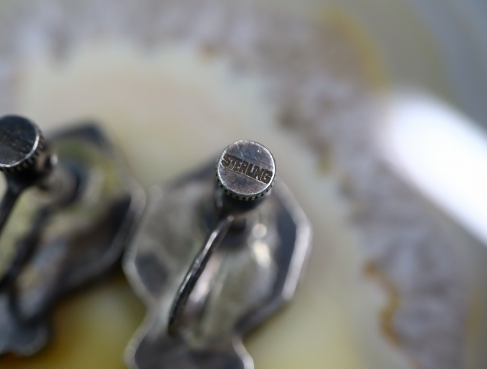 スクリューバックタイプのイヤリングで、スクリューのパーツにスターリングシルバー(925シルバー)であることを表す『STERLING』の刻印が施されています。