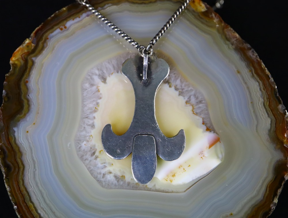 その為、正確な制作時期を判断するのは困難ですが、本作では裏側の仕上げ処理や中央にマウントされたターコイズ、チェーンやデザイン等から、1940年代~1960年代頃に制作された作品と推測されます。