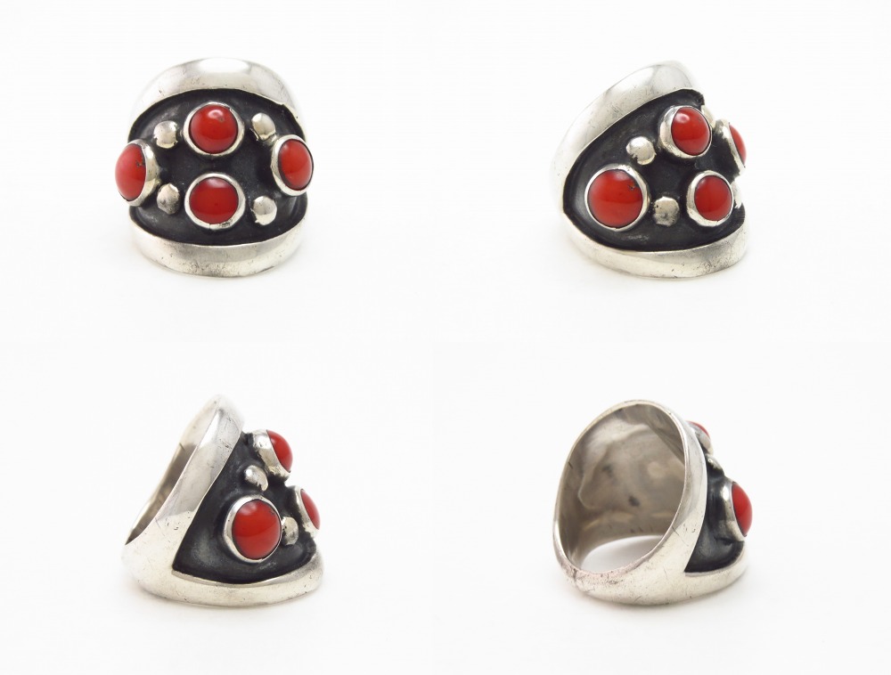 また、立体的な構造と上質なコーラルの強い発色により、特別な存在感を有しますが、性別やスタイルを問わず取り入れて頂けるクリーンなシルバーワークを基本としており、日常のコーディネイトに素晴らしいアクセントをもたらすことが出来るリングです。