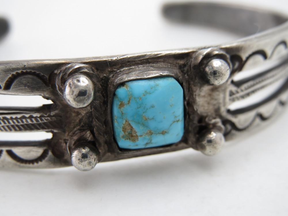 【NAVAJO】ナバホのアンティークジュエリー、インゴットシルバー(銀塊)から成形されたバンドをベースとした武骨なシルバーワークが魅力的な作品で、小さいサイズが貴重なアンティーク/ビンテージバングルです。