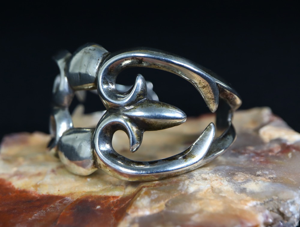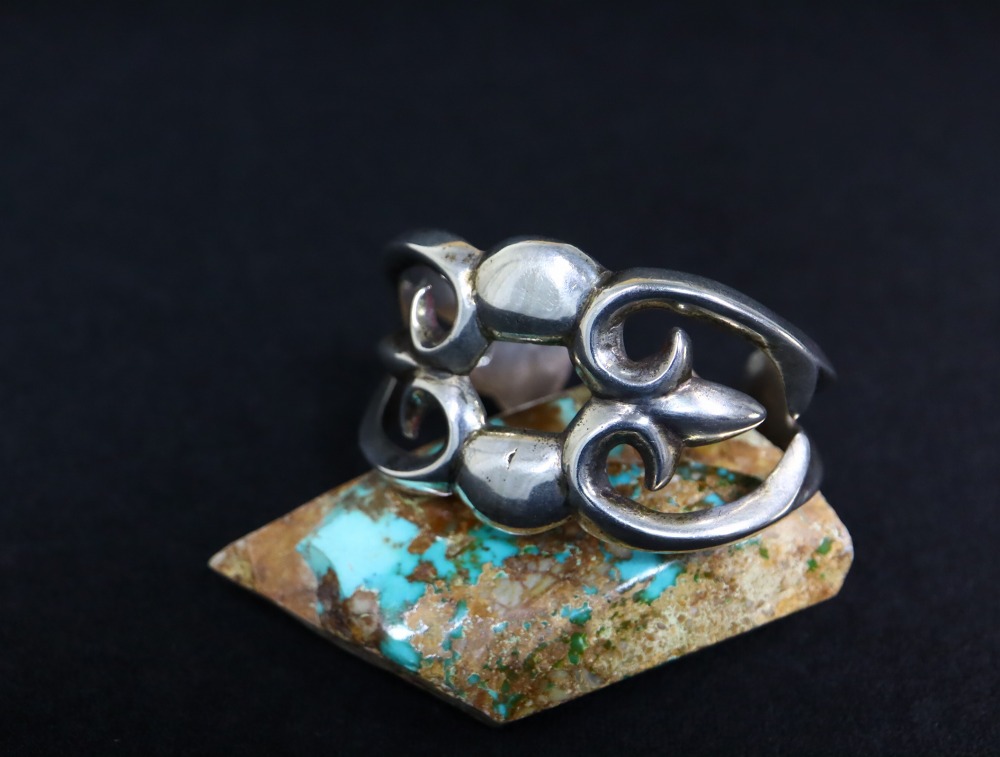 流麗で優美な造形美を持つバンドは、サンドキャスト(砂型鋳物)による成形で、素朴でプリミティブなシルバーワークながらナバホギルドらしく根源的な美しさや力強さを持ち、インディアンジュエリー創成期の作品を意識したものとなっています。