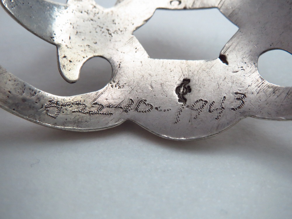 また、古いサンドキャスト製法の特徴として、左右が別々の成形された後、中央でロウ付けされてバンドが形作られており、中央には繋ぎ目のロウ付け跡が確認できます。