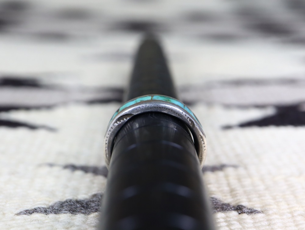 また、伝統的でクラシックなシルバーワークはナバホやホピの作品とも相性が良く、そのナローな幅としっかりとした厚みによる程よいボリューム感、構築的な表情は男性の手においても存在感を放ちます。