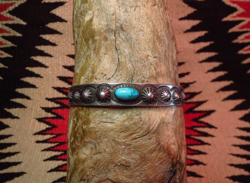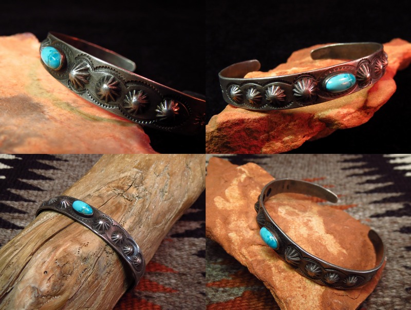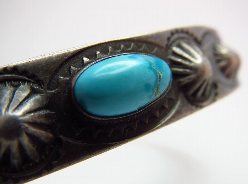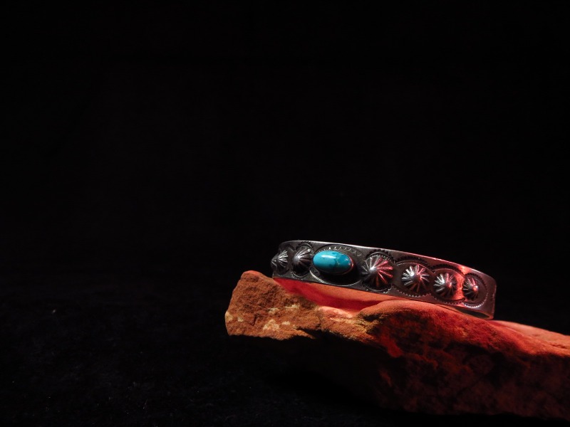 また、美しいコンチョのリポウズと並列してセンターにはさりげなくカボションカットターコイズもセットされ、とても腕に馴染みが良く優れたデザインです。重ね着けにも良い造形。