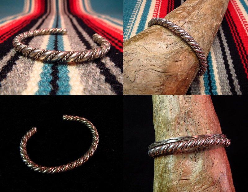 【NAVAJO】ナバホ族、おそらく1960年代~80年代頃の作品と思われるオーセンティックなツイステッドワイヤーのビンテージバングルです。