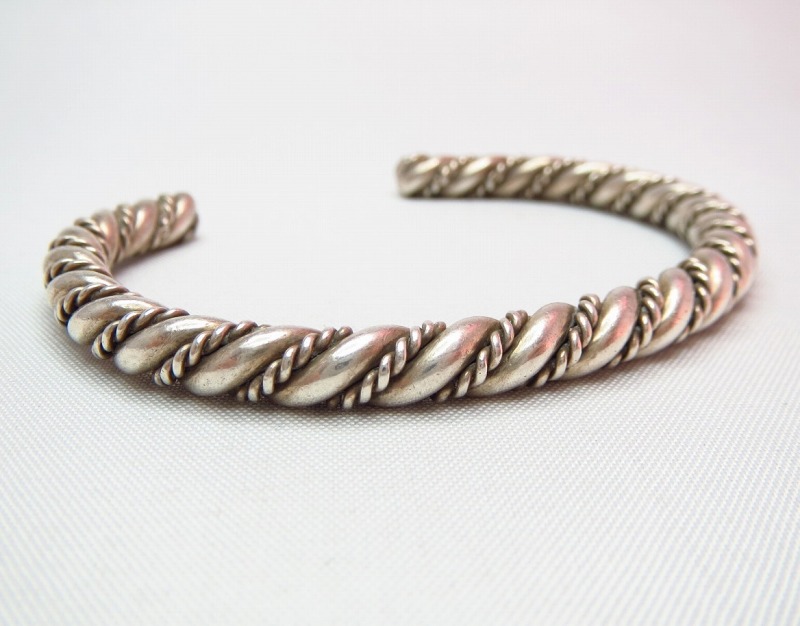 インディアンジュエリーの中でもナバホの伝統技法であるツイステッドワイヤーのシンプルな造形ですが、大変完成度が高く秀逸なデザインです。