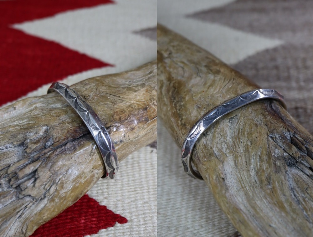 【NAVAJO】ナバホのファーストフェーズ/古典期に近い時代に作られた大変貴重なアンティークジュエリー。重厚なトライアングルワイヤー(竜骨型)をベースにした作品であり、単調でありながら奥行きを生み出しているスタンプワークも特徴的なアンティーク/ビンテージバングルです。