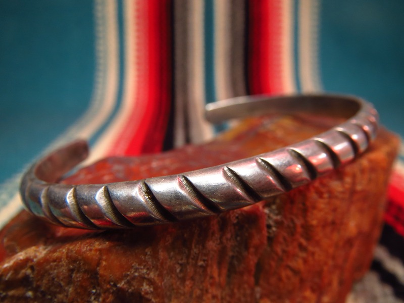 【NAVAJO】ナバホ族のOLDPAWNジュエリーで、エングレイビングと言うシルバーの地金を削るだけで表現する技法で仕上げられたとてもシンプルで美しいビンテージバングルです。