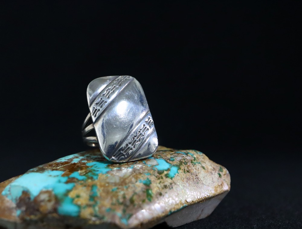 【NAVAJO】ナバホのアンティークジュエリー、【Hollow Style】ホロウスタイルと呼ばれる中空構造によって生み出された柔らかなボリューム感と、『ケトーリング』とも呼ばれる伝統的な造形スタイルが融合した、非常に洗練されたデザインが大変魅力的なアンティーク/ビンテージリングです。