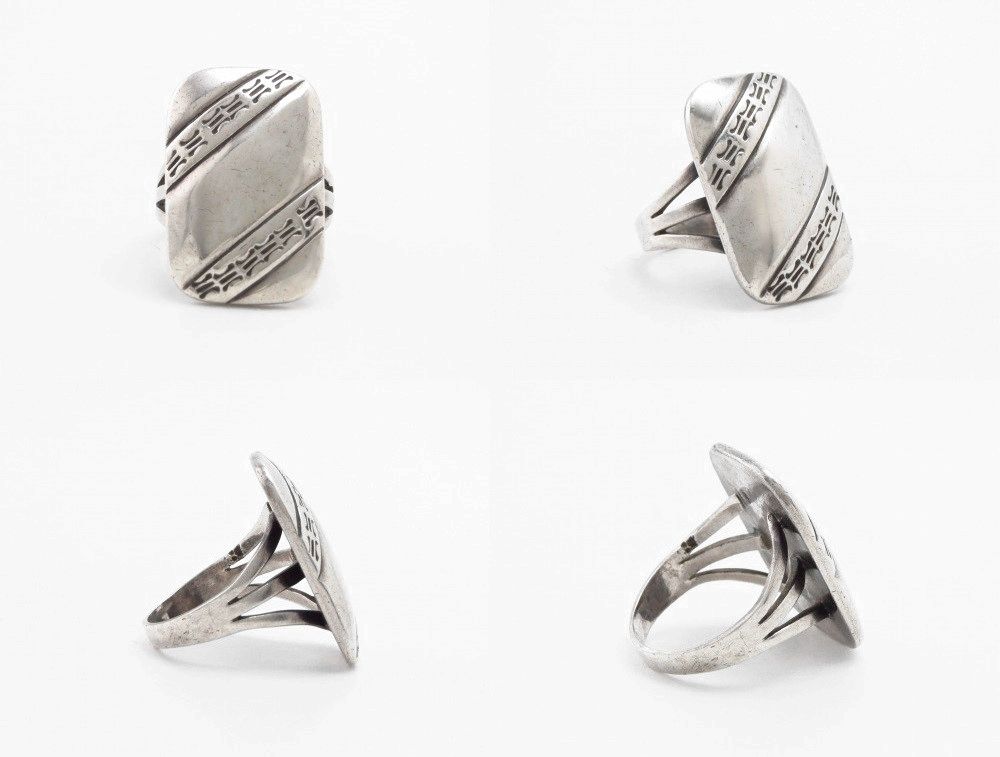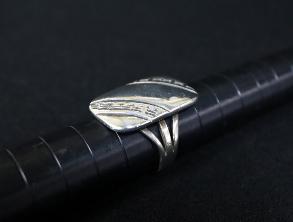 類似した造形スタイルによって作られたブレスレット/バングルは、【Martha & Gene Jackson】マーシャ・ジャクソンとジーン・ジャクソン夫妻や、ジーンの弟で日本でも知名度の高い【Dan Jackson】ダン・ジャクソン等が1960年代頃から多く制作していましたが、本作の様なリングはとても珍しく、作者の推測が難しい作品となっています。