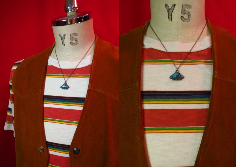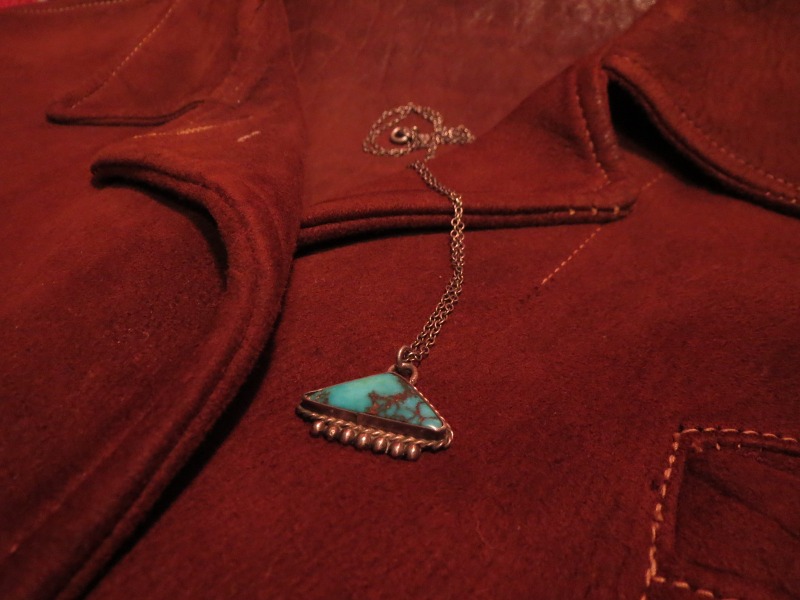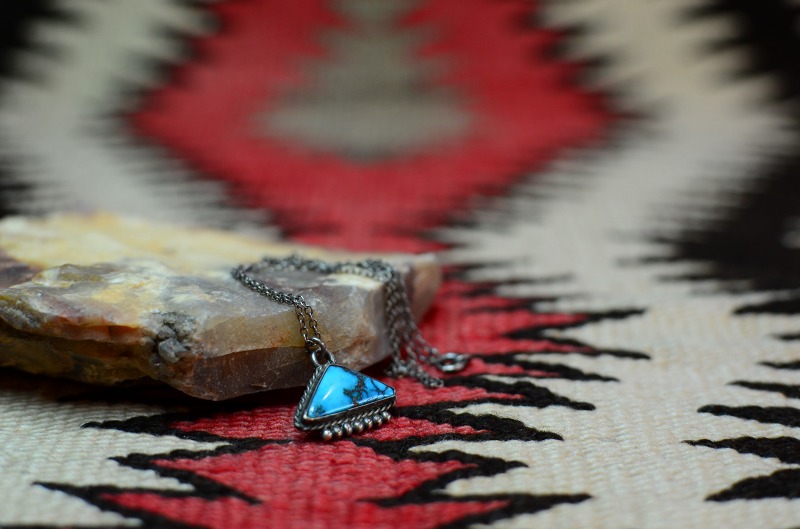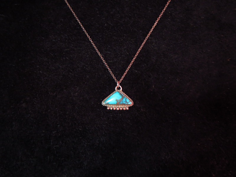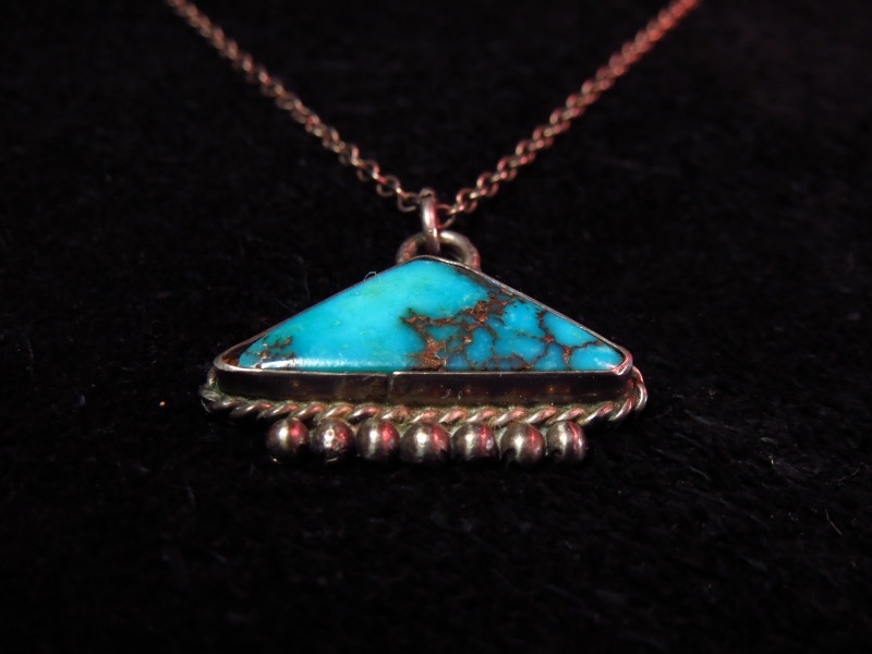 【NAVAJO】ナバホ族のOLDPAWN、トライアングルシェイプのトップと美しいターコイズが印象的なビンテージネックレスです。