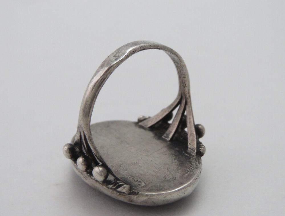 シルバーの小さな凹みや細かなキズ、ハンドメイドによる造形独特な制作上のムラ等は見られますが、着用にあたって不安の無い状態です。
