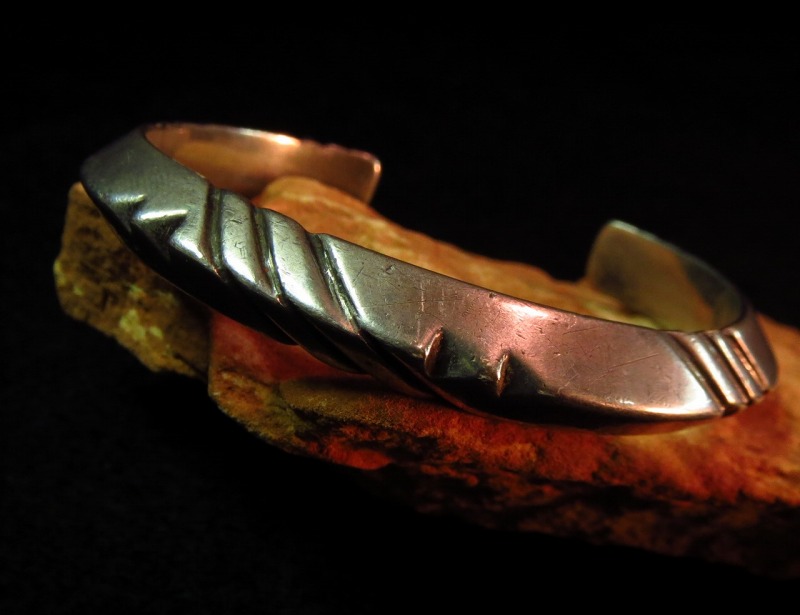 【NAVAJO】ナバホ族のOLDPAWNジュエリー、洗練されたデザインのヘビートライアングルワイヤー(竜骨型)のビンテージバングルです。