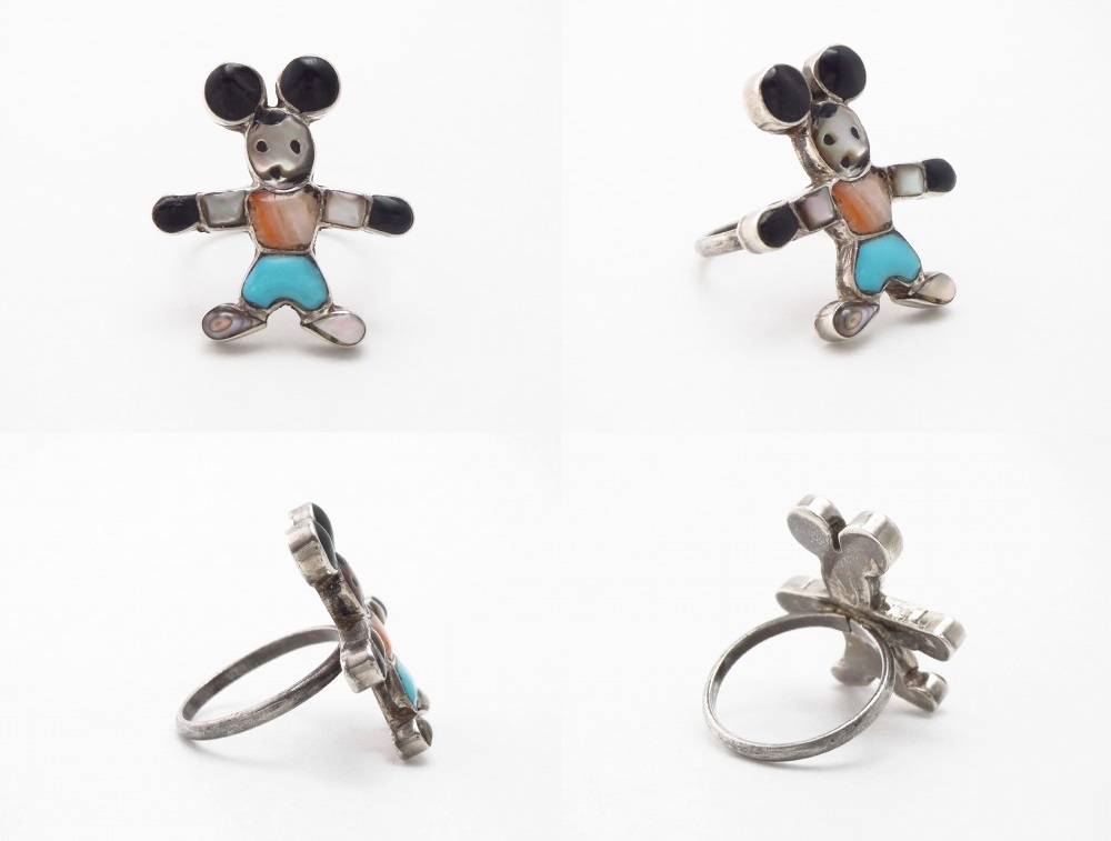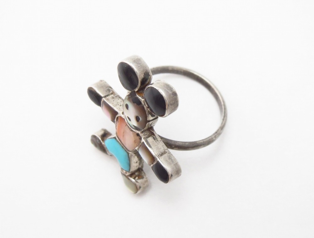 【ZUNI】ズニのビンテージジュエリー、両腕を広げた愛らしいミッキーマウス?をモチーフとした独特の雰囲気を持ったビンテージ/オールドリングです。