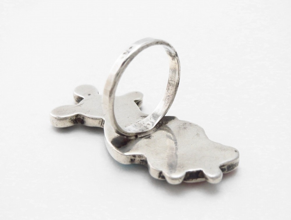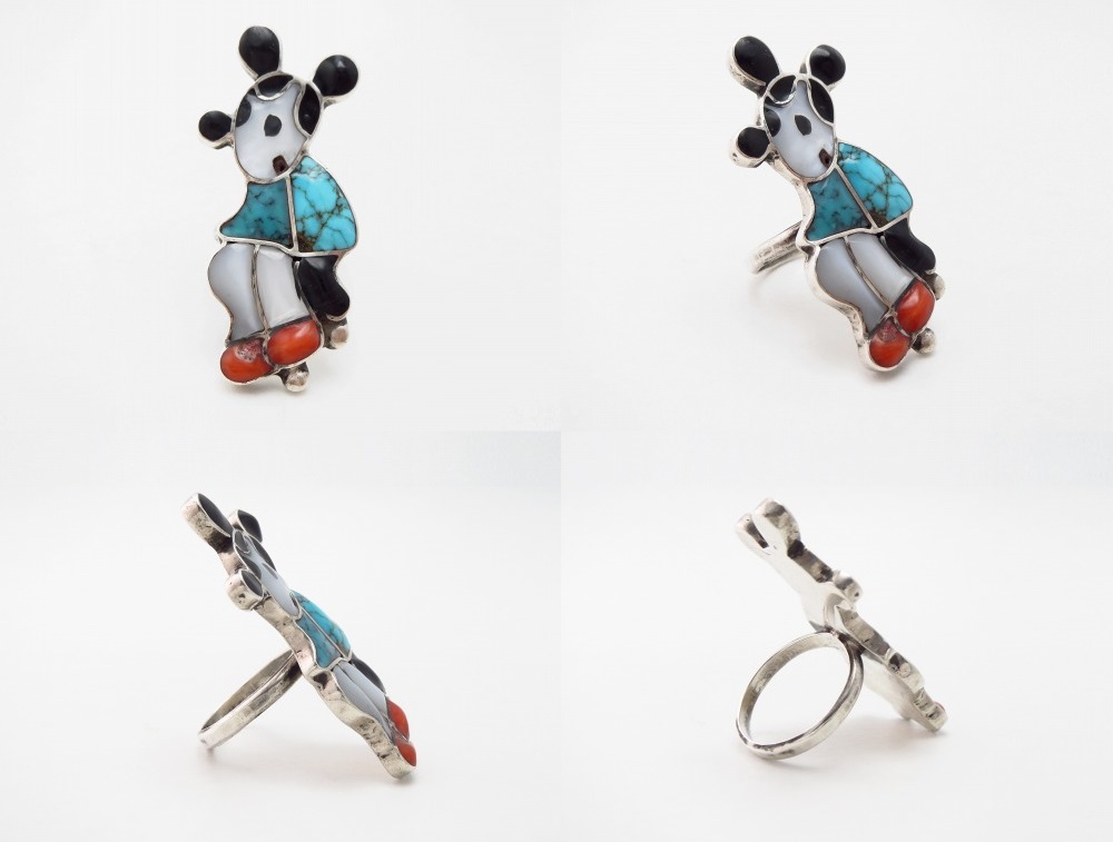 【ZUNI】ズニのビンテージジュエリー、ミッキーマウス?をモチーフとしたズニのキャラクターモチーフ作品(Zuni Toons/ズニトゥーンズ)としては、非常に珍しくとても質の高いターコイズがインレイされたビンテージ/オールドリングです。