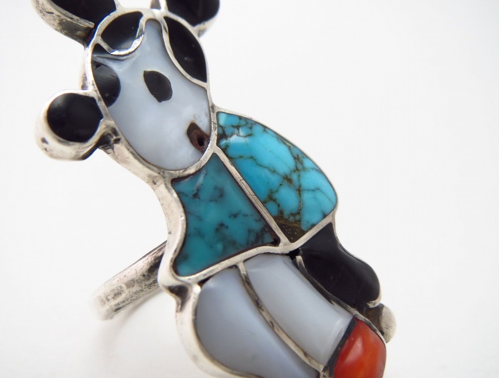 こちらの様なアイコニックなキャラクターモチーフのインレイジュエリーは、ズニトゥーンズとも呼ばれそれらのビンテージピースは、日本ではあまり紹介されていないアイテムですが、アメリカではコレクターが多く、大変人気の高い作品群となっています。