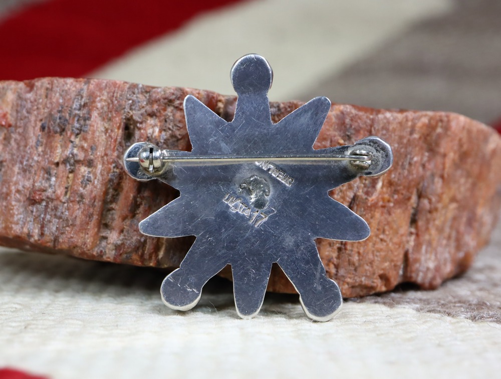 【NAVAJO】ナバホのシルバースミスによるアンティークジュエリー。裏面にある『UITA17』の刻印により【Hubbell Trading Post】ハッベルトレーディングポストで制作されたことが確認できるピースであり、バースト(放射状)デザインの5ポイントスターがモチーフとなったアンティーク/ビンテージピンブローチです。