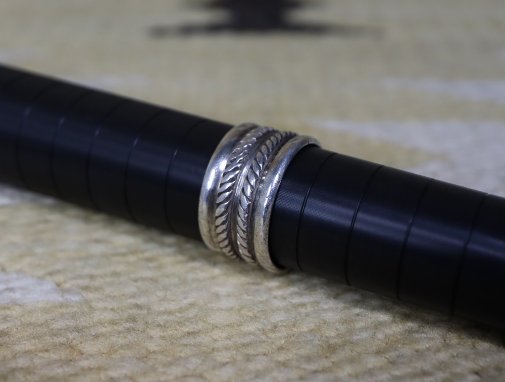 そして、凸状に造形された立体的なライン上には素朴ながら力強いスタンプワークが連続して刻まれ、複雑な文様ではありませんが奥行きがあり非常に力強いナバホらしさとシンプルで洗練された印象を生み出しています。