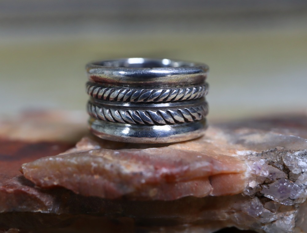 ナバホの古典的な技術によって構成された素朴でクラシックなリングであり、それなりに幅のボリューム感を持った造形ですが、手への馴染みも素晴らしいリング。性別やスタイルを問わず多くのシーンにおいてナチュラルに溶け込むと思われます。