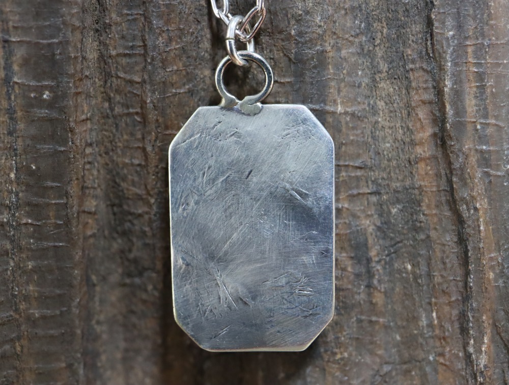 1930年代頃に作られた作品であり、こちらのようなシルバープレートタイプのタグ/タブは、当時のサウスウエスト観光で荷物タグとして使われていたものとされていますが、現在はアクセサリーのパーツとして広く用いられています。