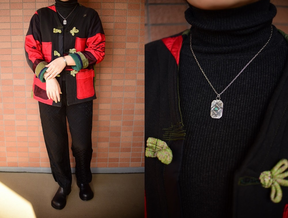 付属のシルバーチェーンは新しいものですが、こちらもシルバー製で独自にアンティーク加工を施しており、ビンテージピースによく馴染む表情になっています。