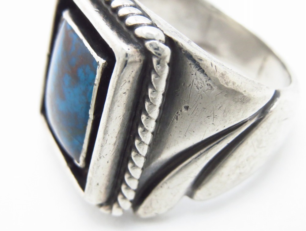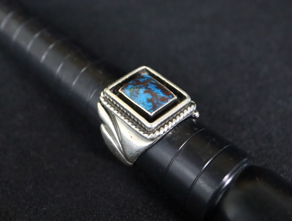 コンディションは、元々セットされていたターコイズにダメージが有り、少しベゼルにも揺らぎが確認できましたので、その石もすでに交換されていたように思われます。