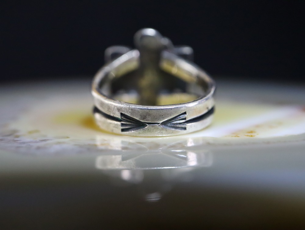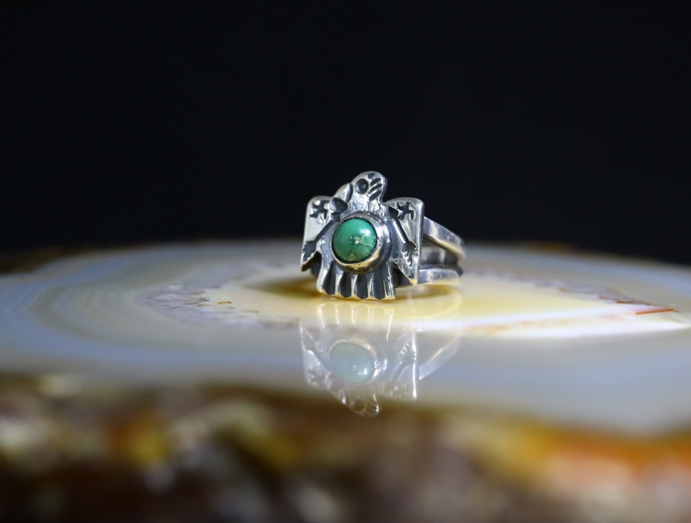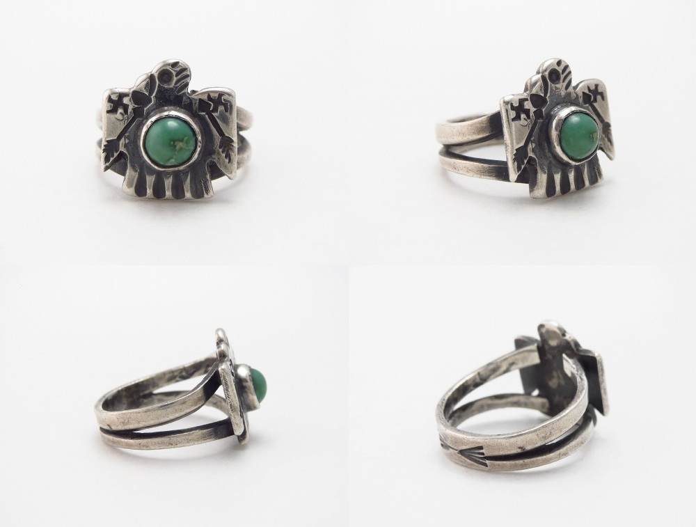 シンプルながらフロントのサンダーバードを強調した好デザインのリングとなっており、ビンテージインディアンジュエリーらしく素朴でエスニシティな印象に仕上げられています。