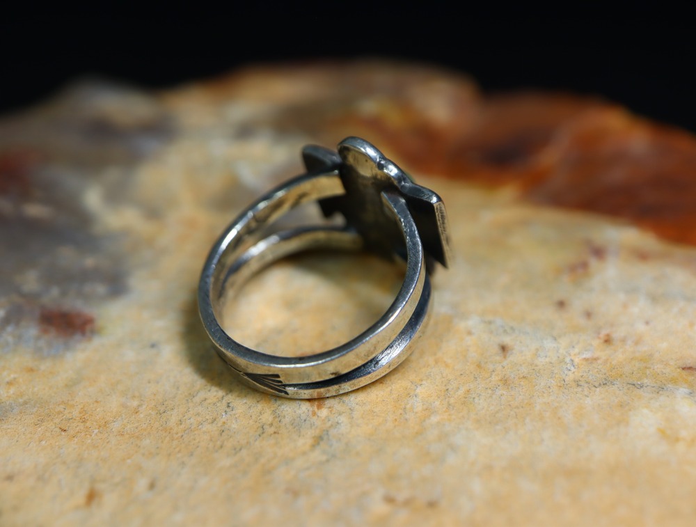 【NAVAJO】ナバホのアンティークジュエリー、【卍】Whirling Log/Nohokosの刻印されたサンダーバードがフェイスに構成された作品。クラシックで伝統的なアイテムながら、現在では非常に現存数の少ない貴重なアンティーク/ビンテージリングピースです。