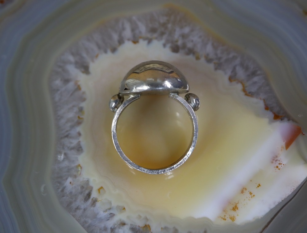 このようなシルバービーズをメインとした造形スタイルは、ナバホパールの別名からインディアンによる『パールリング/真珠の指輪』といえるスペシャリティを持ったリングです。