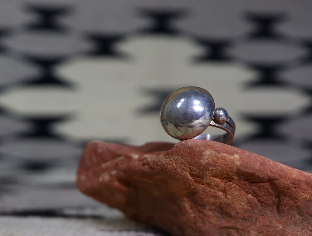 【NAVAJO】ナバホか【PUEBLO】プエブロのアンティークジュエリー、『ナバホパール』とも呼ばれるシルバービーズをフェイスに構成した作品で、全てハンドメイドによる地金製法で形作られたアンティーク/ビンテージリングです。