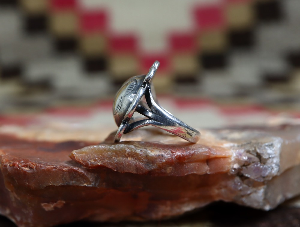オーセンティックなスプリットシャンクなどのディテールによって素朴なナバホジュエリーの表情やビンテージ独特の味わいも感じられる作品。ツーリスト向けアイテムとは異なった一点物の魅力と価値を持つリングであり、トレジャーハントプライスな作品の一つとなっています。