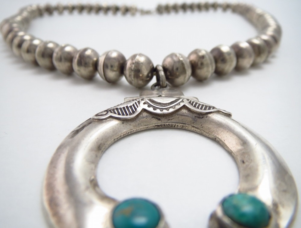 【Hopi】ホピか【NAVAJO】ナバホのアンティークジュエリー、『ナバホパール』とも呼ばれる64個もの上質なベンチメイド(ハンドメイド)シルバービーズと非常に特殊な構造で形作られた小さなナジャトップで構成されたアンティーク/ビンテージネックレスとなっています。