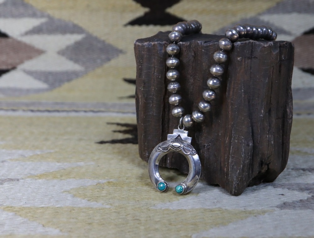 本作の様な伝統的なシルバービーズは、現地において『ナバホパール』(ナバホの真珠)や『デザートパール』(砂漠の真珠)等とも呼ばれ、ナバホジュエリーにおいて古くから制作されています。