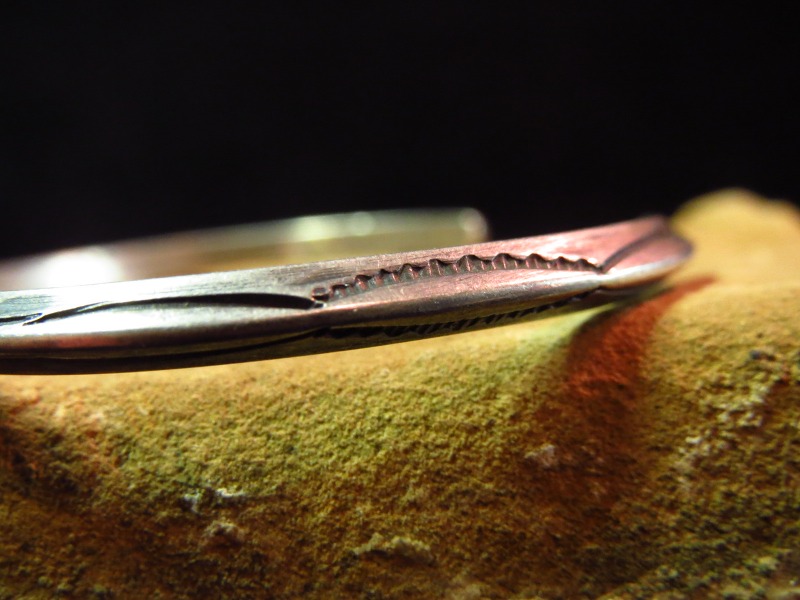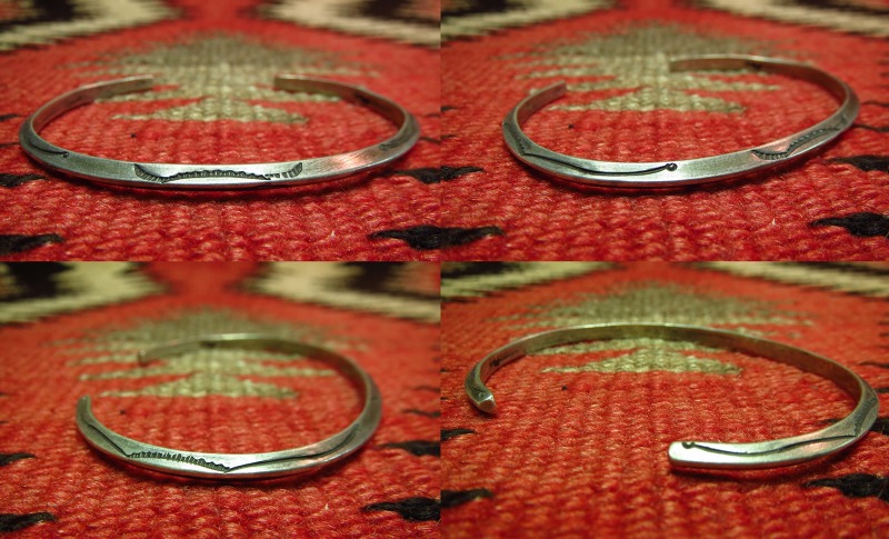 【NAVAJO】ナバホ族、1920年代~30年代製のフレッド・ハービースタイル初期に作られた作品と思われる、ナローなトライアングルバングルです。