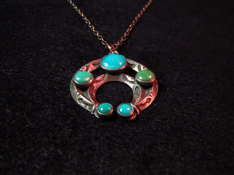 細かなスタンプワークが施されたナジャトップはターコイズもセットされ、フレッド・ハービースタイルでは珍しいモチーフのナジャですが、デザインの仕上がりはフレッド・ハービースタイル特有のポップな印象もあります。