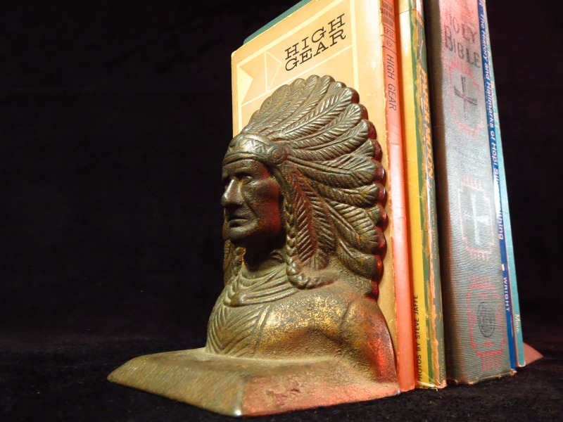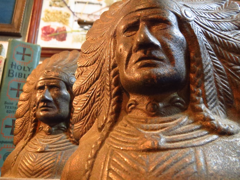 インディアンチーフをモチーフにした重厚な鉄製アンティークブックエンドです。左右2個セット。