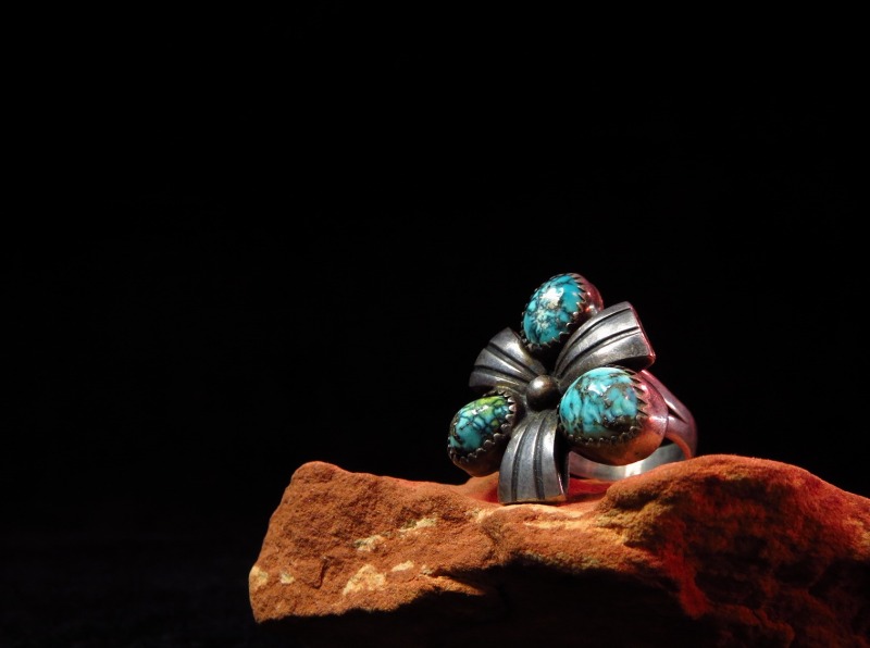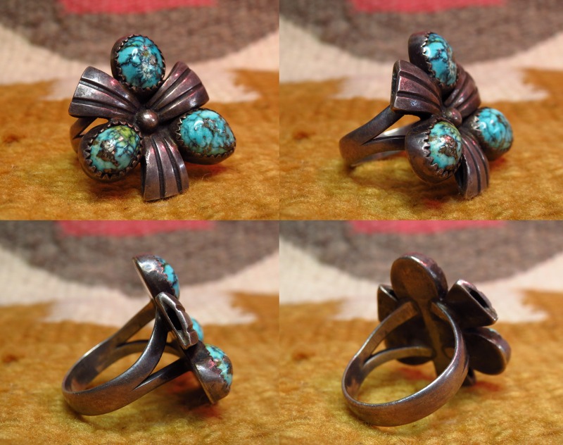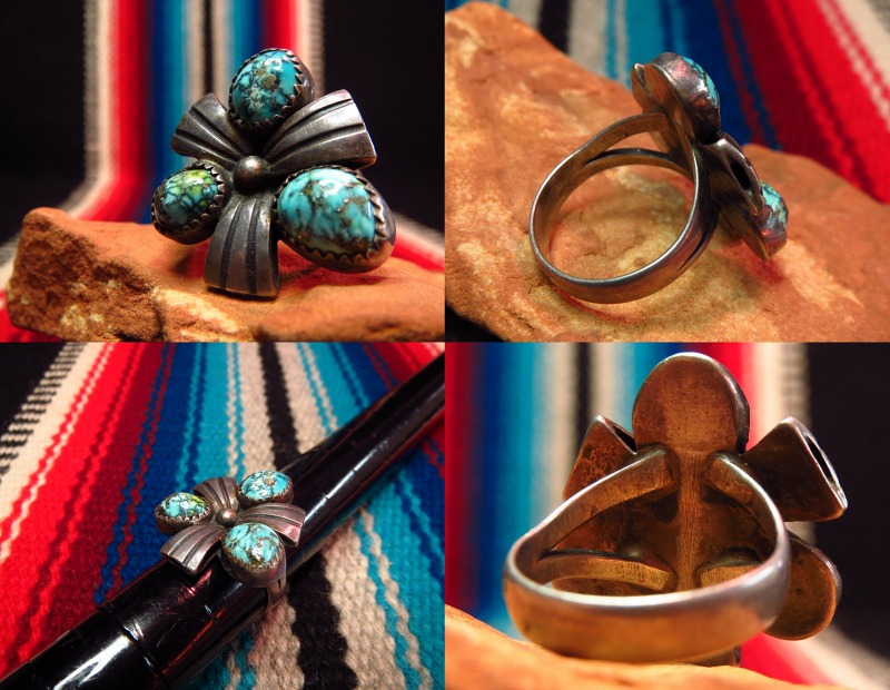 【NAVAJO】ナバホ族のOLDPAWNジュエリー、スパイダーウェブにパイライトの入る力強いターコイズと美しい造形が印象的なビンテージリングです。