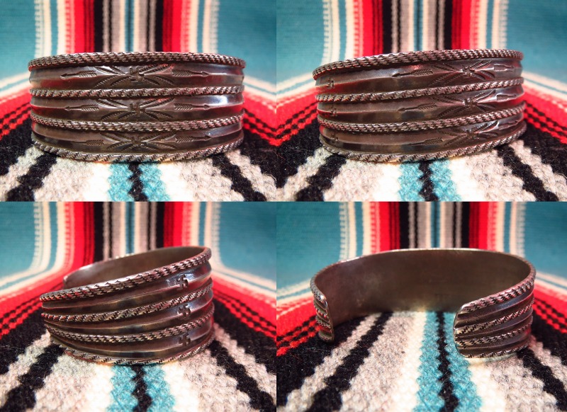 【PUEBLO】プエブロ・【NAVAJO】ナバホの作家が在籍したインディアンクラフトショップ【GARDEN OF THE GODS TRADING POST】ガーデンオブザゴッズトレーディングポストで作られた作品。美しく武骨なチゼルワークと高い技術によって造形されたアンティーク/ビンテージシルバーバングルです。