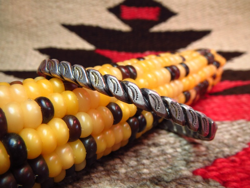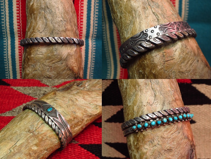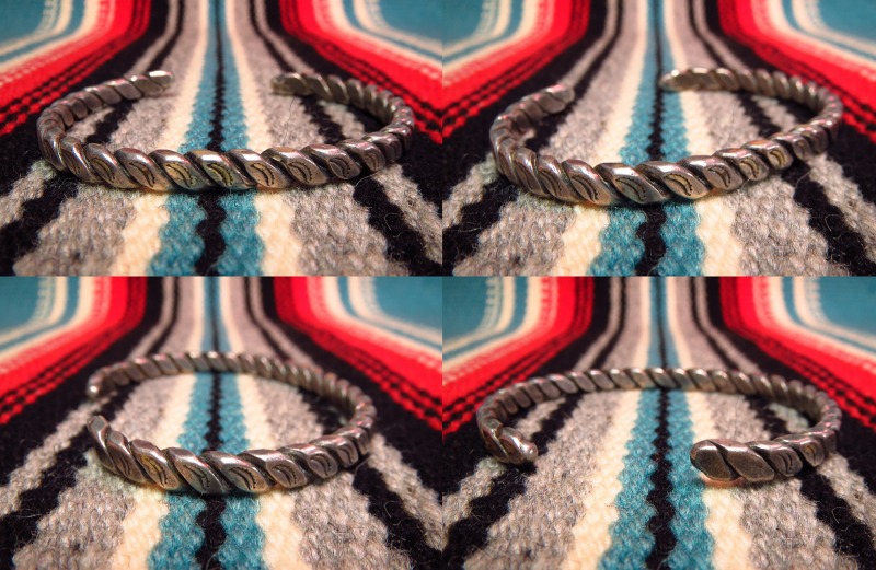 【NAVAJO】ナバホの1940年代~50年代頃の作品と思われるツイステッドワイヤーにスタンプワークが施されたビンテージバングルです。