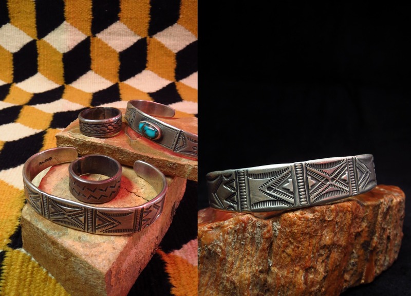 現在も頑なに古い製法を守り、INGOT(銀塊)から成形したシルバーにトラディッショナルなスタンプを使った巧みなデザインワークが特徴的です。それらの制作には大変な手間が掛かるため、もともと作品の数は多くありませんが、現在はご高齢なこともあり、入手が難しい作家のひとりになっています。