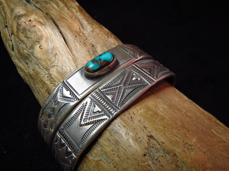 【Apache】アパッチ族とフランス系アメリカ人混血の作家、【Al Somers】アル・ソマーズの作品で、ナバホのオールドスタイルバングルです。 Al Somersは伝統的な製法を守りながら素晴らしい作品を生み出す大ベテラン作家です。