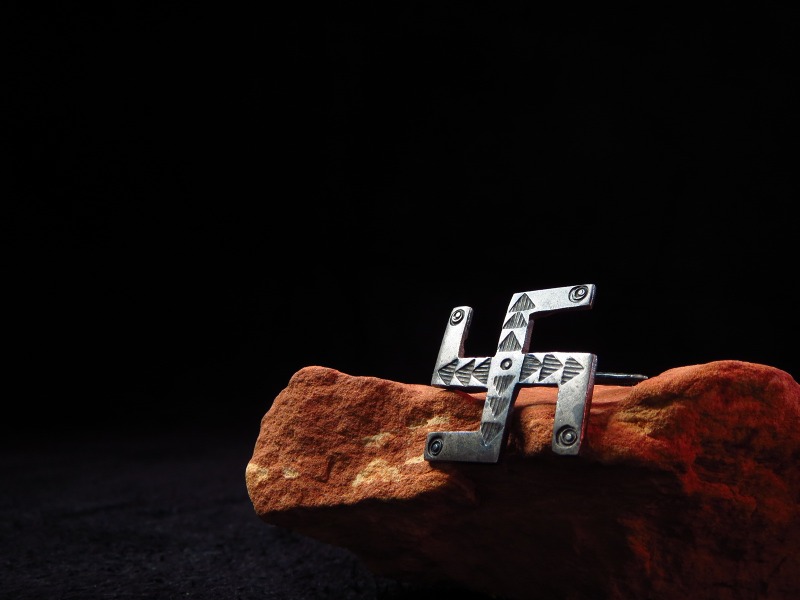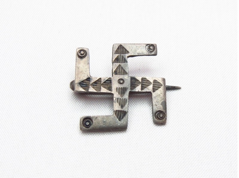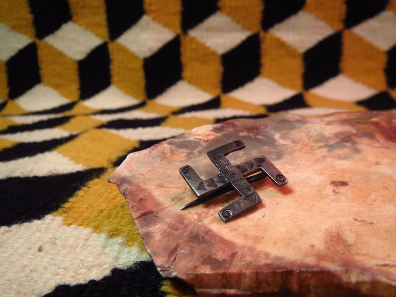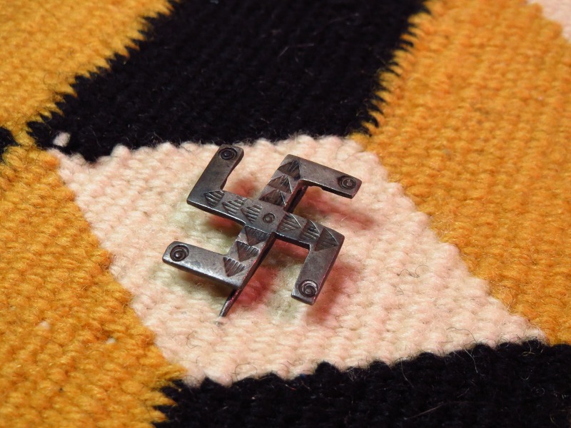 【NAVAJO】ナバホの1920年代~30年代頃に作られたと思われるフレッド・ハービースタイル、【卍】Swastikaがシンボリックに使われたフックタイプのピンブローチです。
