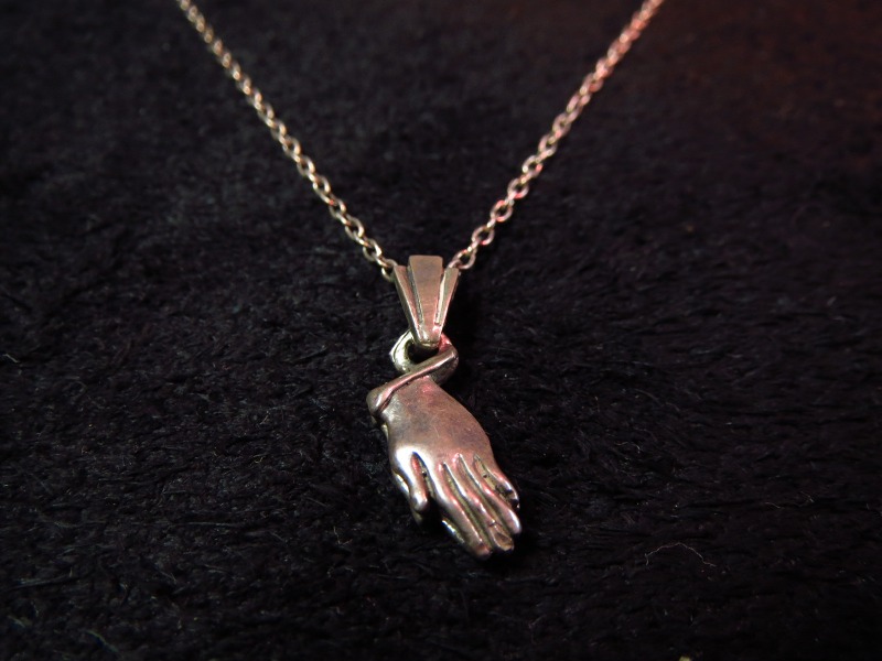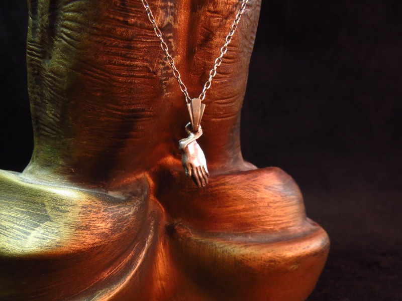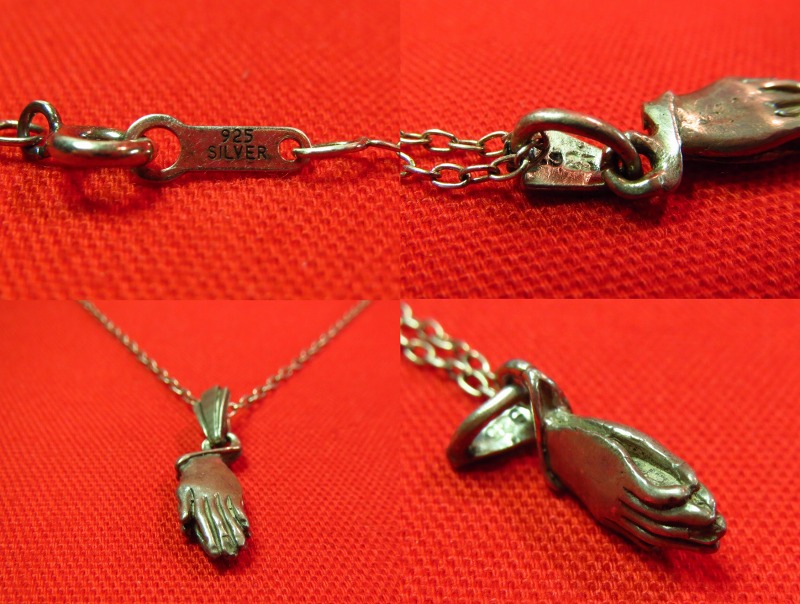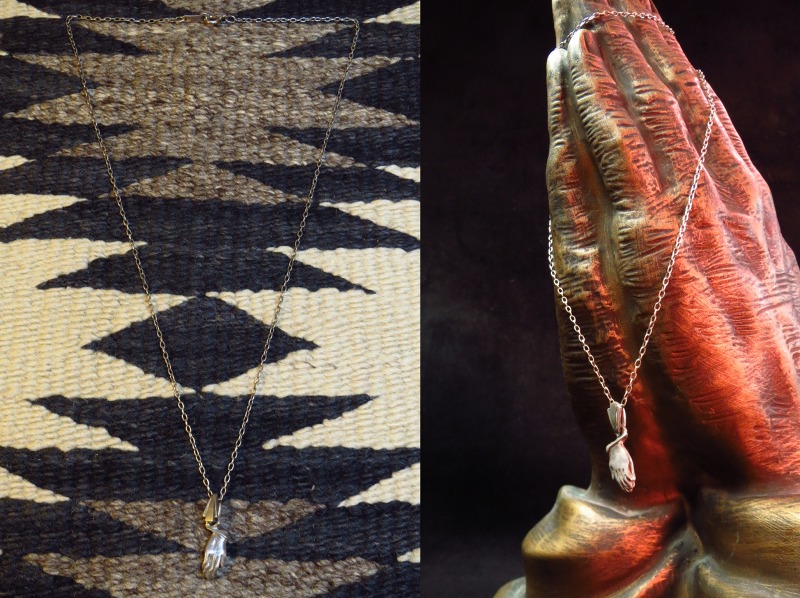 ビンテージデボーショナルアーツ・ジュエリー、【Praying Hands】プレイングハンズフォブネックレスです。 アメリカ東部製と思われる聖具のシルバーネックレスになります。