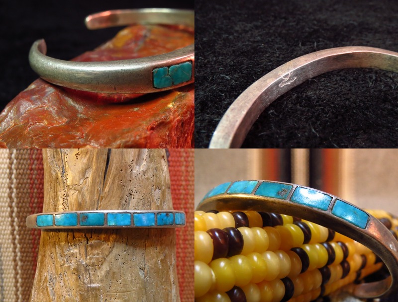 【ZUNI】ズ二族のチャンネルインレイと言うターコイズをピッタリとシルバーに埋め込む技術により造形されたアンティーク/ビンテージバングルです。