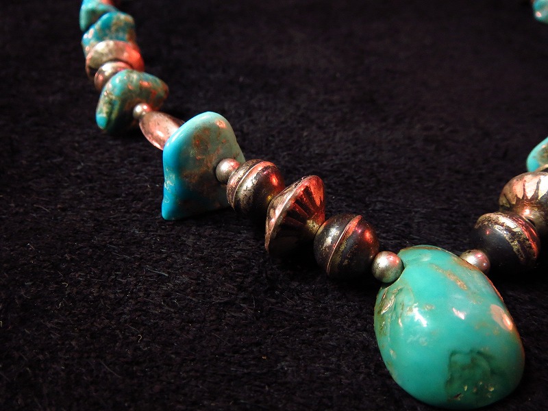 Ingot、コインシルバー製と思われるシルバービーズと鉱山などは不明ですが、発色の良いターコイズの組み合わせで構成されています。