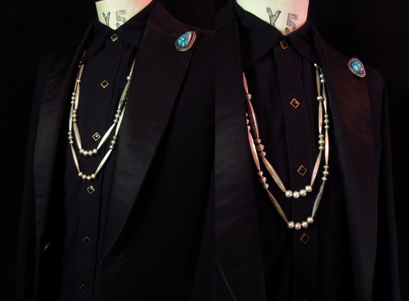 また、こちらの作品はJoe H. Quintana氏が得意としたシルバービーズのみで構成されたネックレスで、現在は息子の【Cippy CrazyHorse】シピー・クレイジーホース氏が、同じ技術と造形、ツールも受け継ぎ、非常に類似したネックレスを制作しています。