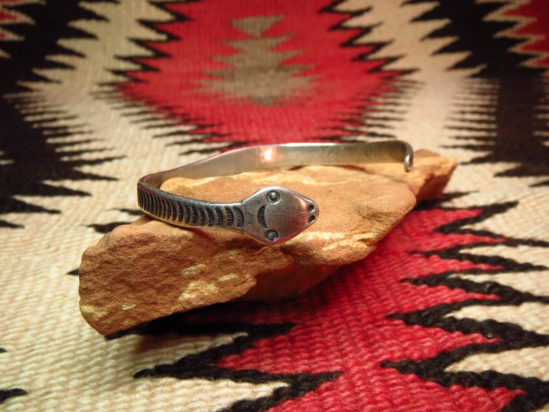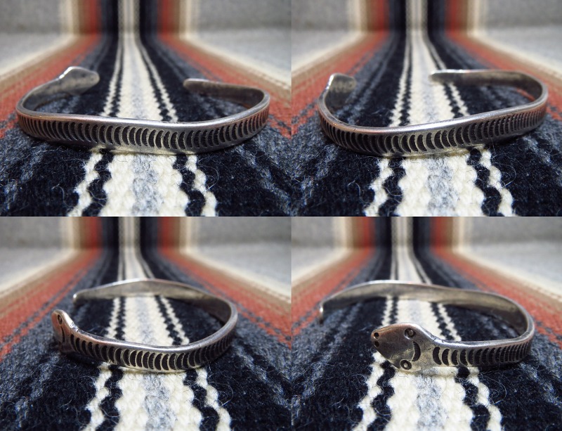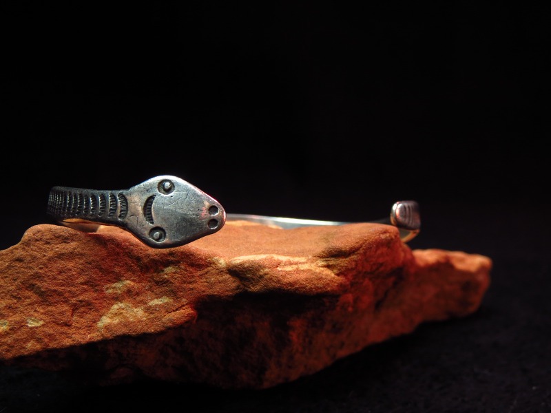 【NAVAJO】ナバホか【PUEBLO】プエブロの作品で、とても美しい蛇をモチーフにしたアンティーク/ビンテージバングルです。 1920年代製と思われ、【Cippy CrazyHorse】シピー・クレイジーホースをはじめ、多くの現代作家が元にしたアンティーク作品の貴重なオリジナルピースです。