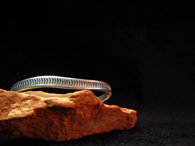 ナローなバングルのため、大きな存在感はありませんが、インゴット独特の上質なシルバーの肌に仕上げられ、クリーンで洗練された美しさを持った作品です。