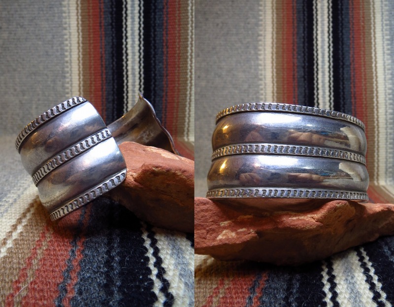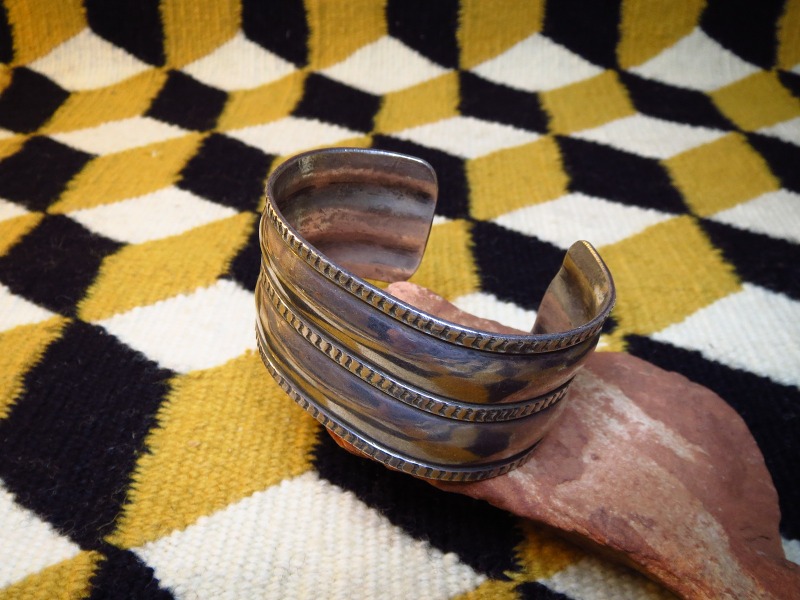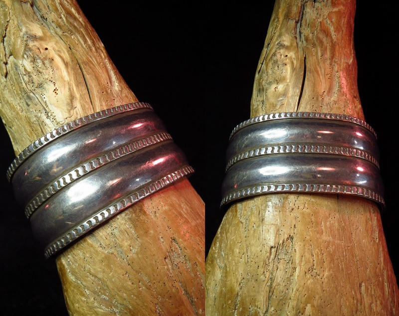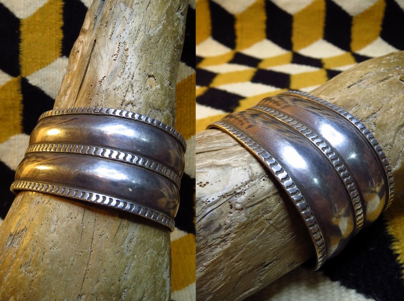【NAVAJO】ナバホの古い職人組織【NAVAJO GUILD】ナバホギルドのピースと思われるバングルで、中でも大巨匠【Ambrose Roanhorse】アンブローズ・ローアンホース(1904-1982) による作品と推測される特徴的なスタイルのアンティーク/ビンテージワイドバングルです。